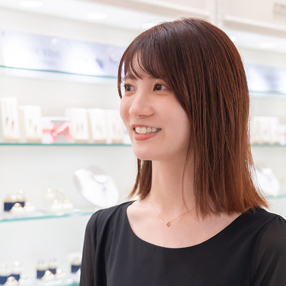 私は以前からジュエリーに興味があり、キラキラとした空間で接客を通して人を笑顔に、そして幸せにすることに憧れを持っていました。