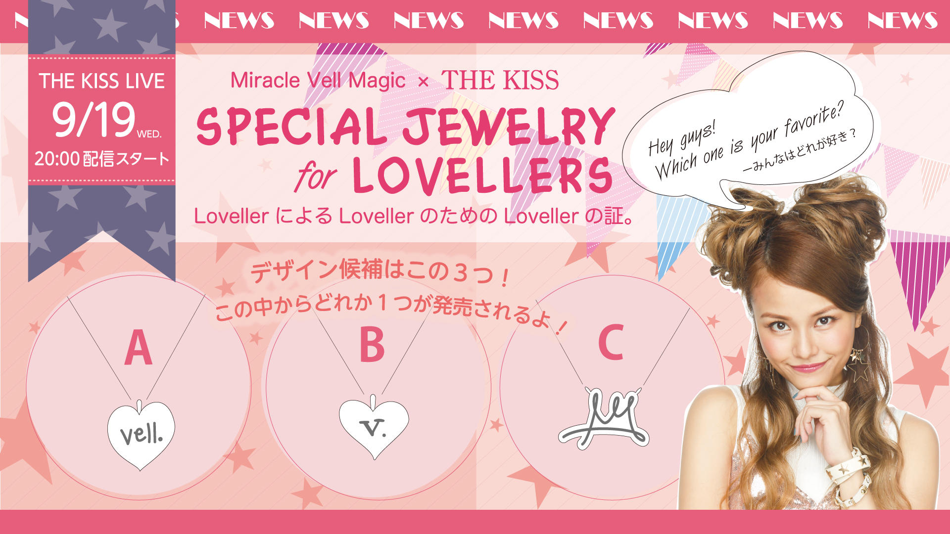 【THE KISS LIVE ライブ配信情報】Miracle Vell Magic × THE KISS コラボネックレスファン投票&発売!