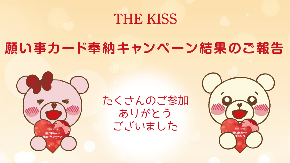2018年12月28日(金)~2019年2月28日(木)の期間中、全国のTHE KISS直営ショップにご来店いただいたすべてのお客様を対象に「願い事カード奉納キャンペーン」を実施いたしました。
