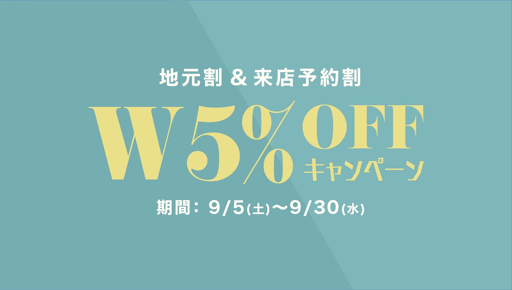 地元割&来店予約割 ダブル 5%OFF キャンペーン《9/5-9/30》
