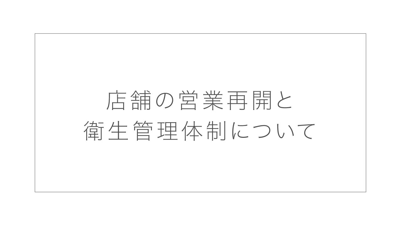 この度、各自治体の休業要請緩和の決定に伴い、店舗の営業を再開させていただくこととなりました。