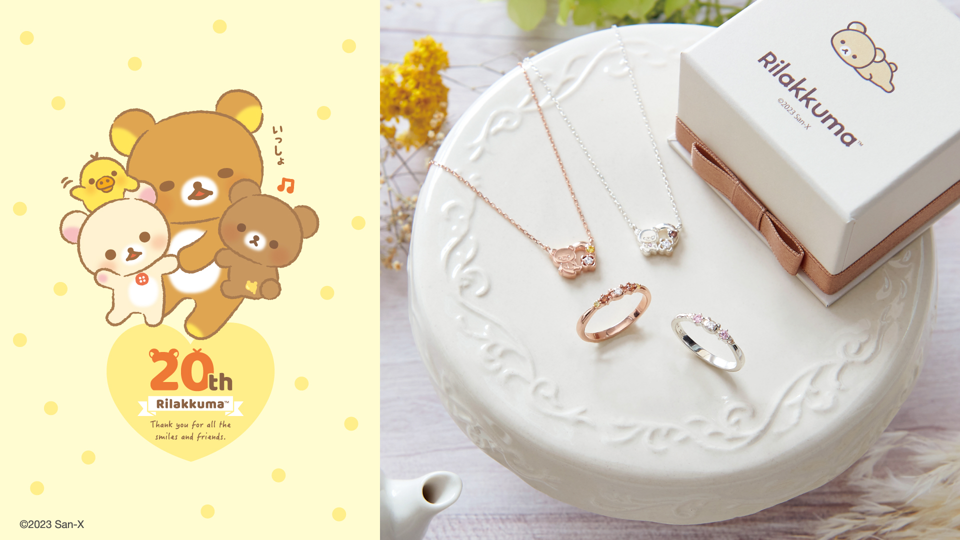 2023年8月29日(火)より、THE KISS直営5店舗とTHE KISS公式オンラインショップにて、リラックマ20周年を記念したジュエリーを発売いたします。