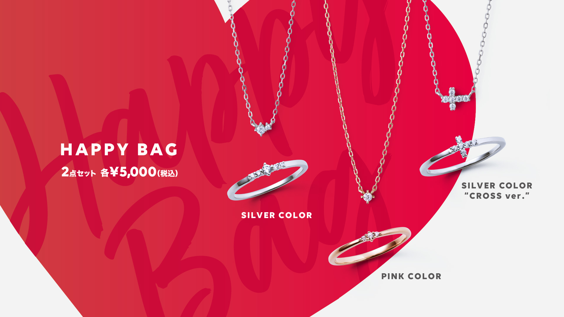 毎日のコーディネートにプラスしたくなるシンプルな「ネックレス1点」「リング1点」を2点セットにした数量限定のHAPPY BAGが登場。