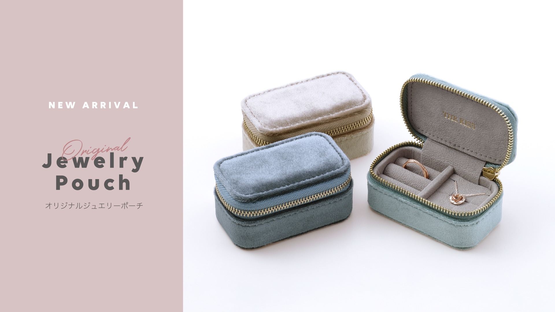 2023年12月2日(土)より随時、全国のTHE KISS直営店舗にてコンパクトサイズがかわいらしいオリジナルジュエリーポーチの新カラーを発売いたします。